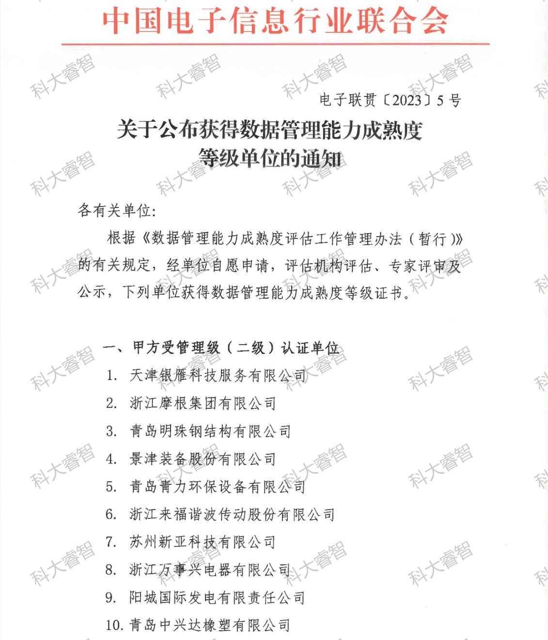 祝賀!科大睿智服務(wù)企業(yè)通過第五批DCMM名單