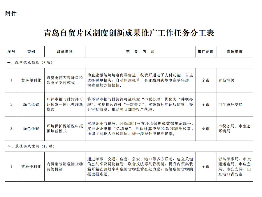 關于做好中國(山東)自由貿(mào)易試驗區(qū)青島片區(qū)16項制度創(chuàng)新成果推廣工作的通知